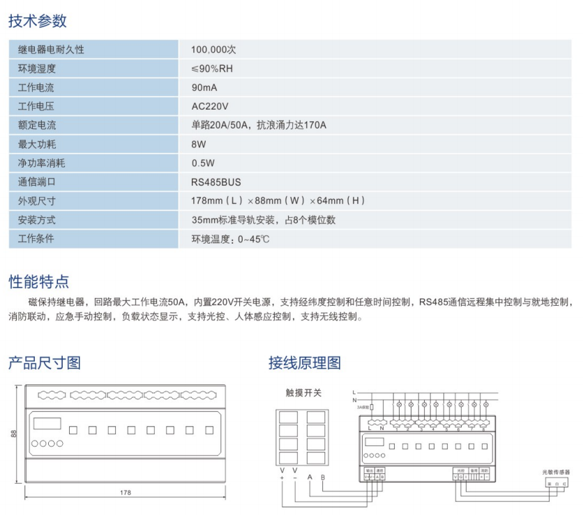QC-8路20A/50A經(jīng)緯度智能照明模塊
